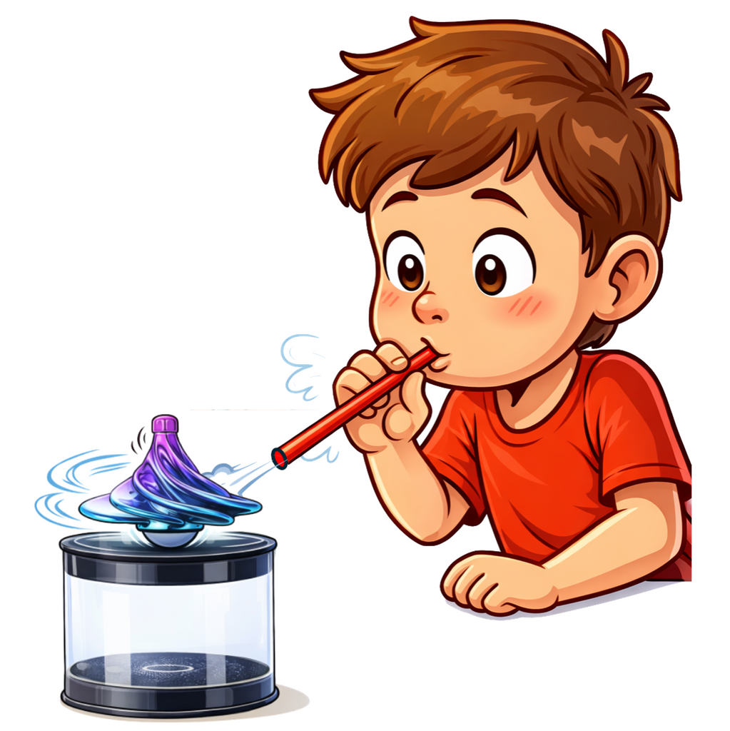 This awesome little spinning top is powered by blowing on it!