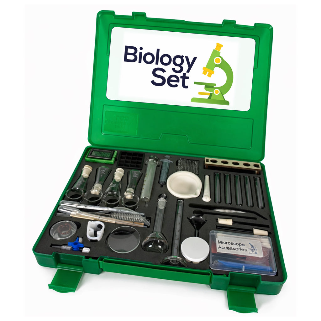 1 x Microscope accessories (5x glass slides, 100 x glass cover slips, Lens cleaner, 4 x cotton buds, extra petri dishes, plastic tweezers)