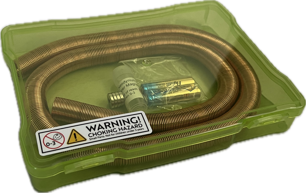 Attach two super magnets to each side of a AAA battery to make the 'train' (All provided in the set) and push the 'train' into the coil.