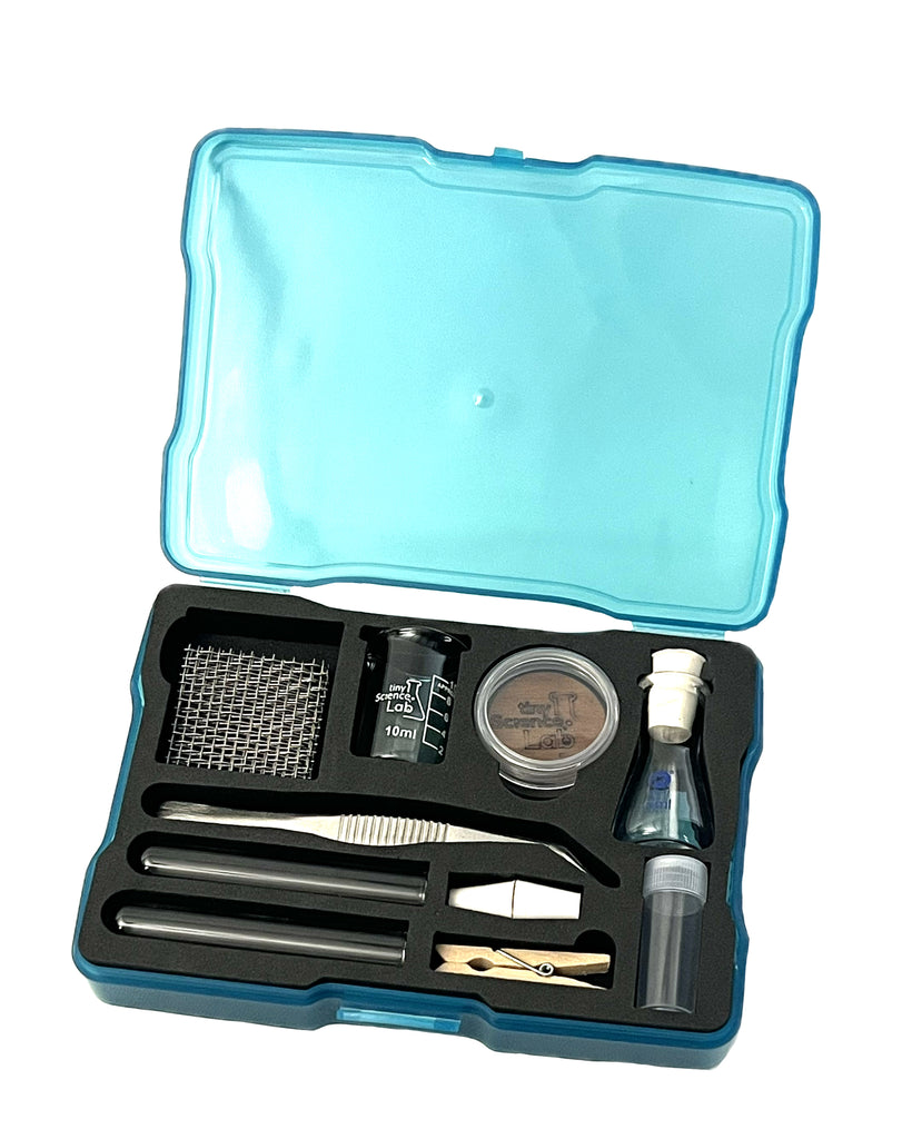 This set includes a first of its kind simple heating unit designed to incorporate a tea light candle to heat a beaker, conical flask or small metal pan.