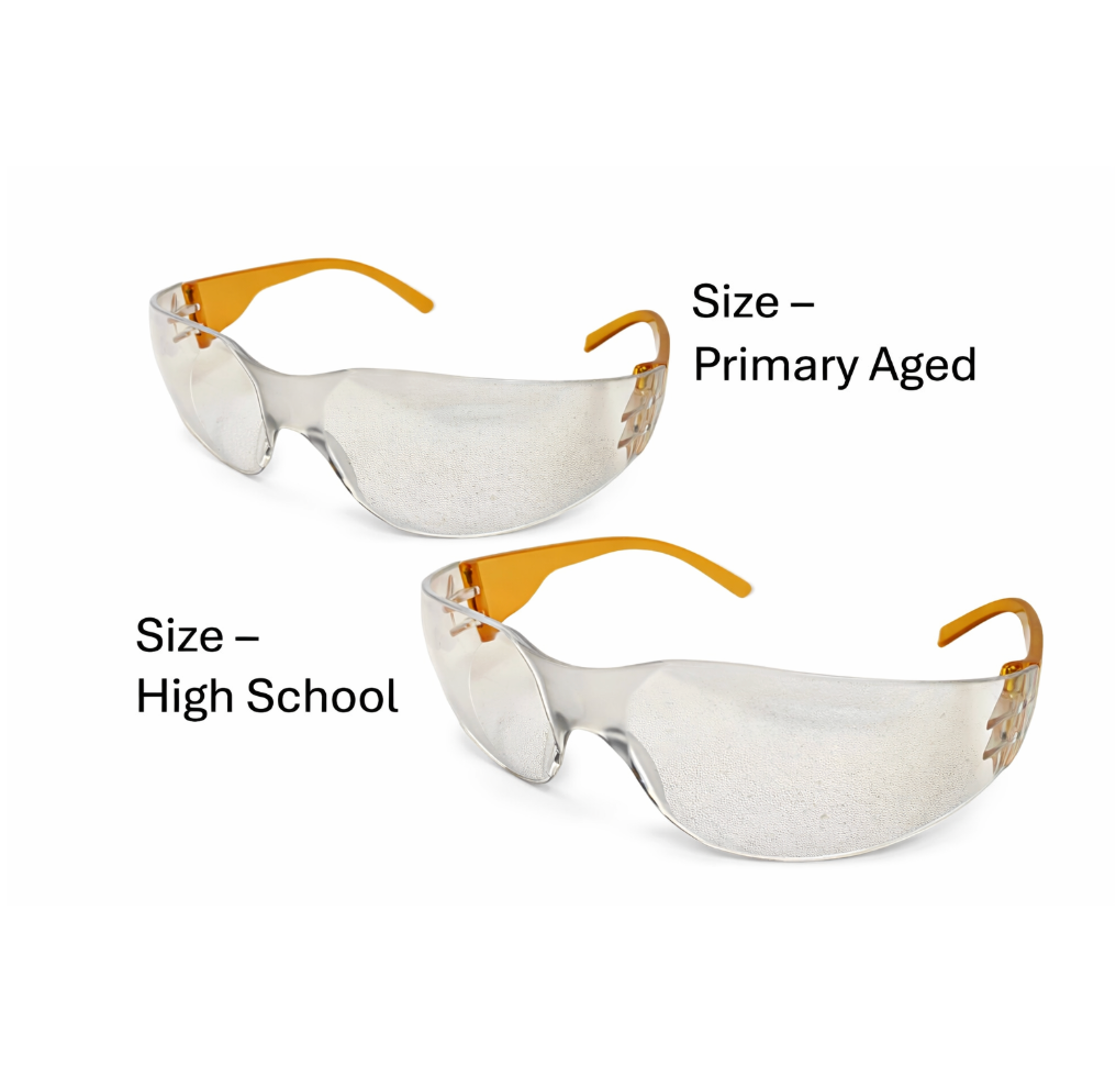 We have two different sized safety glasses, ensuring that kids always get a snug fit!